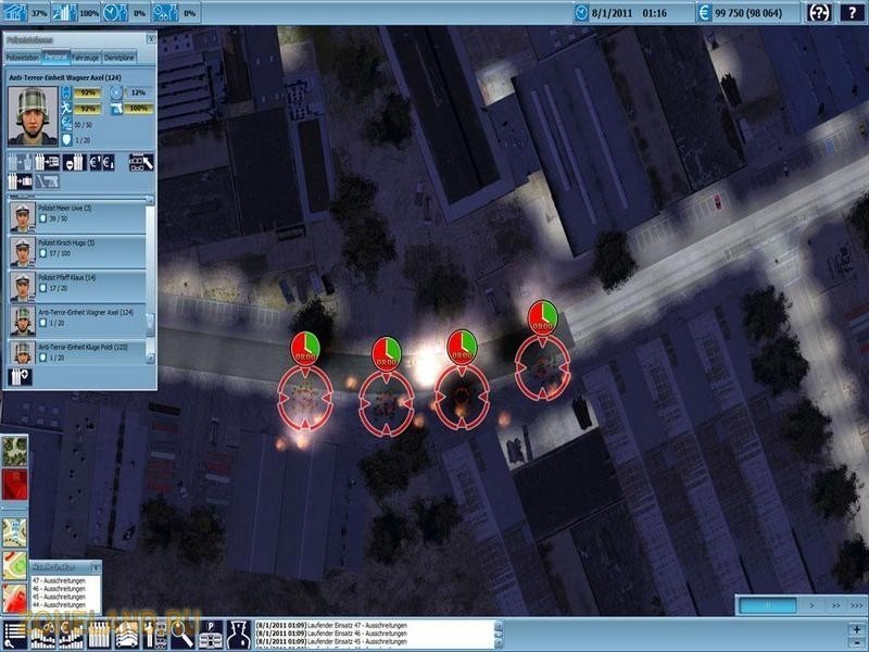 О игре:Немецкий симулятор полиции Police Die Polizei Simulation – это нечто новое среди симуляторов. Пользователь выступает в роли диспетчера и командующего над бригадой полицейских. В задачу игрока входит грамотное распределение сил на вызовы, а также тактические схемы, позволяющие полиции Германии справляться со всеми преступлениями. В распоряжении игрока есть масса полезной техники, каждая из которых дает специальные возможности, упрощающие захват преступников. Конечно, если попытаться пройти миссию без дополнительной помощи и сделать это успешно, можно получить специальное достижение, однако для любителей симуляторов хочется отметить, что игра действительно достойна того, чтобы в нее поиграть. Огромное количество разнообразных ограблений, начиная от простых бытовых проблем, куда можно послать одну полицейскую машину, которая с легкостью разберется с мелким беспорядком, заканчивая серьезными преступлениями, среди которых может быть ограбление, убийство или продажа и транспортировка наркотиков. Пользователю нужно регулярно следить за событиями в тех или иных частях города, чтобы вовремя обнаруживать преступников и грамотно обезвреживать их. Police Die Polizei Simulation – это один из самых реалистичных симуляторов полиции, признанный многими игроками.